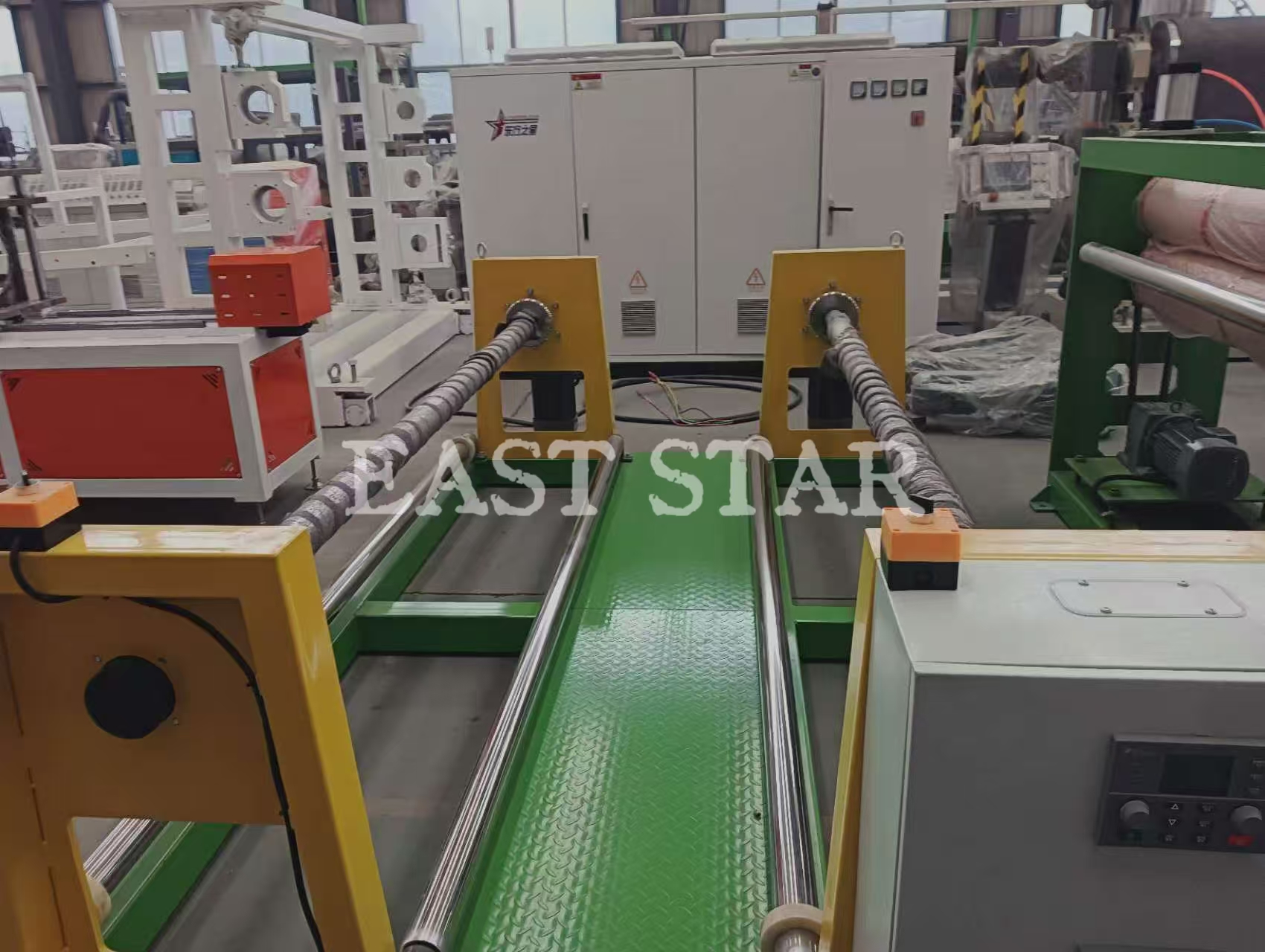 · تقويم ثلاثي الأسطوانات: يبرد ويصقل الصفيحة المبثوقة المنصهرة، ويتحكم بدقة في سمك المنتج النهائي وشكله النهائي.