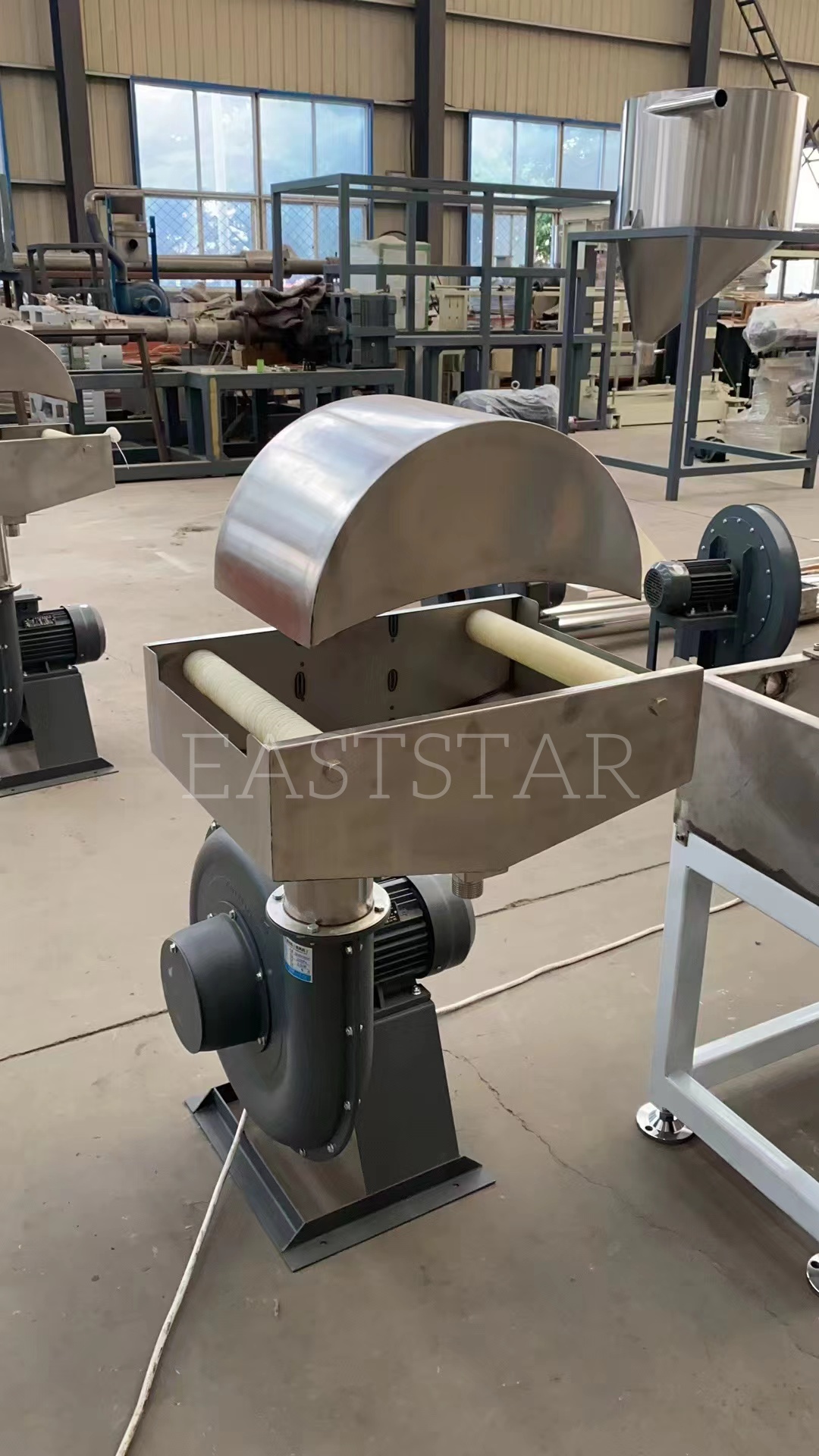 الالمحبب المزدوج اللولب الموازييشتمل على وحدة تغذية قياس حلزونية مزدوجة بقدرة 2.2 كيلووات ونسبة سرعة 17:1، مما يضمن تغذية متسقة للمواد. بالنسبة لقسم القطع، يستخدم نظام التحبيب البلاستيكي قالب القطع الساخن مع 72 فتحة بقطر 2.8 مم، تكملها أربع شفرات قطع في مجموعة السيف. يقوم منفاخان عاليا الضغط (5.5 كيلو وات و4 كيلو وات) بنقل الكريات بكفاءة عبر الأنابيب المصنوعة من الفولاذ المقاوم للصدأ إلى أنظمة الفصل والتجميع.