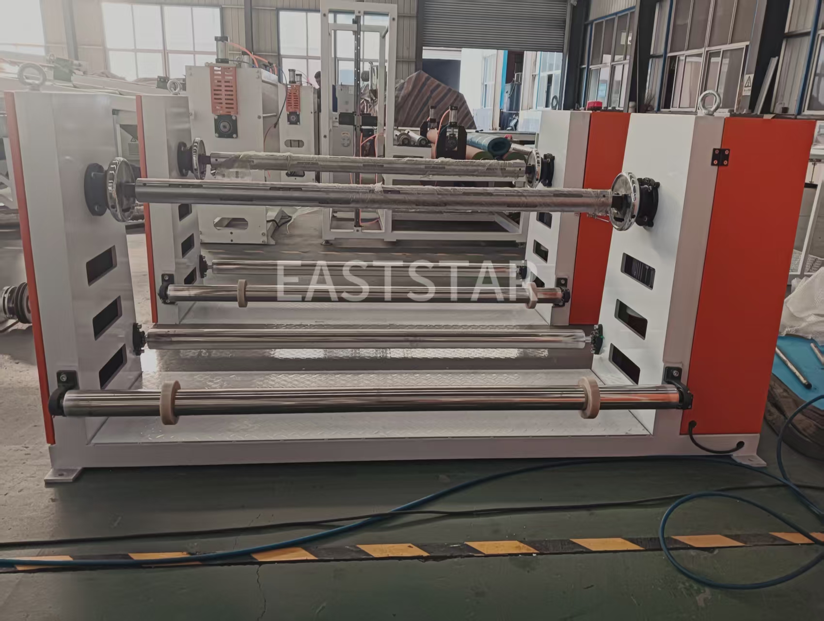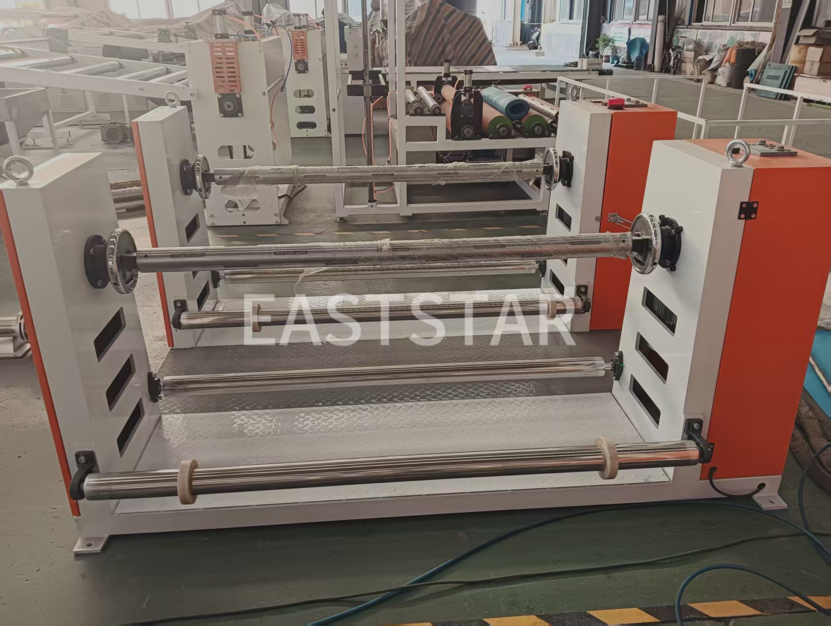 يستخدم نظام التحكم في درجة حرارة الأسطوانة الماء النظيف المخفف كوسيط، مع دقة التحكم في درجة الحرارة ±1°C، ومجهز بمضخة ماء ساخن 2.2KW وثلاث مجموعات من سخانات 9KW. جهاز تفكيك اللف ذو المحطة المزدوجة مُجهز بعمود هوائي ونظام التحكم في التوتر لتحقيق الإنتاج المستمر. الخط إنتاج غشاء مقاوم للماءتم تجهيزه أيضًا بجهاز تشذيب الحواف ونظام لف حافة النفايات لضمان حواف المنتج الأنيقة.