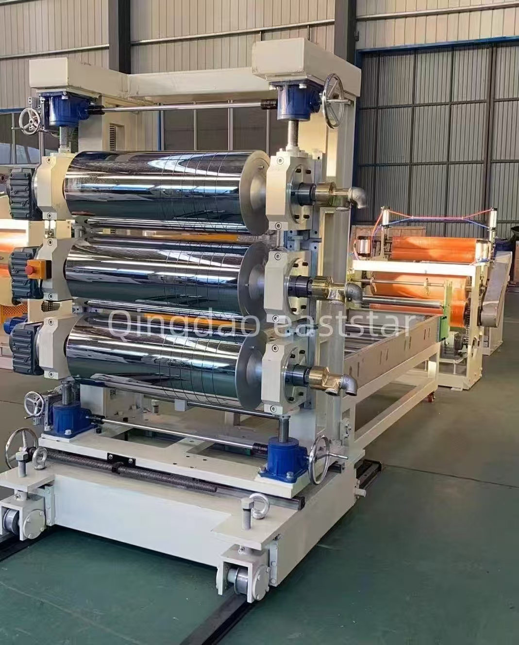 الخط إنتاج ستائر الأبواب المرنة PVCيعتمد التقويم ثلاثي الأسطوانات الخاص بـ's على هيكل عمودي، ومجهز بأسطوانات ذات تشطيب مرآة ∮320×800 مم مع صلابة الأسطوانة RC60-65. يشتمل خط الإنتاج أيضًا على دعم تبريد بطول 5 أمتار، وآلة جر ذات أسطوانة مطاطية، ونظام لف مزدوج المحطة، مما يحقق تدفقًا كاملاً للعملية من المواد الخام إلى المنتجات النهائية. خلال زيارته للموقع، أشاد العميل بشدة بكفاءة الإنتاج وجودة المنتجمعدات الستائر المرنة PVCمما يخلق الظروف المواتية للتوقيع الرسمي في نوفمبر.