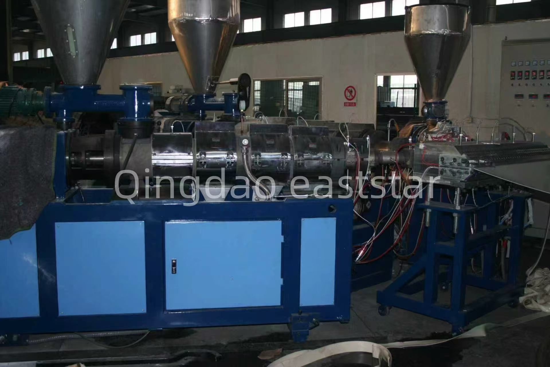 المعدات الأساسية للخط إنتاج الألواح المموجة ذات البثق المشترك PC+ASAيتضمن جهازي بثق لولبي واحد، SJ-120 وSJ-40، يستخدمان لبثق طبقة PC وطبقة ASA، على التوالي.