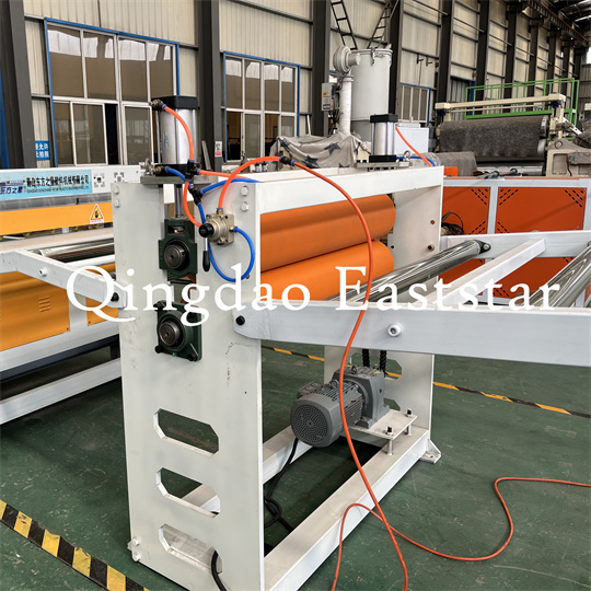 آلة تصنيع الألواح الناعمة البلاستيكية المقاومة للانزلاق: تتكون المعدات بشكل أساسي من آلة بثق أحادية اللولب، وتقويم ثلاثي الأسطوانات، وقوس تبريد بطول 6 أمتار، وآلة جر الأسطوانة المطاطية، وآلة القص، وجهاز الحزام الناقل.
