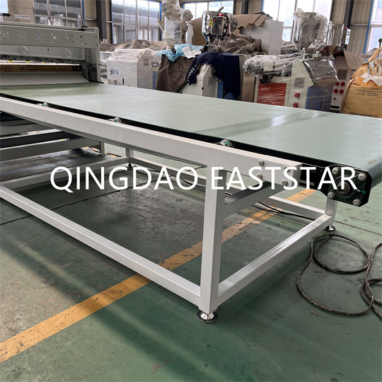 معدات بثق لوحة الإضاءة PVC: تتكون المعدات بشكل أساسي من آلة بثق مزدوجة اللولب، وقالب لوحة، وتقويم ثلاثي الأسطوانات، وقوس تبريد،