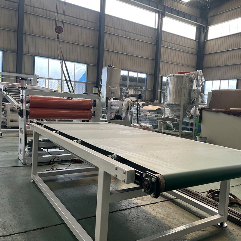 خط إنتاج آلة بثق الألواح الشفافة PVC: تتكون المعدات بشكل أساسي من آلة بثق مزدوجة اللولب، وقالب لوحة، وتقويم ثلاثي الأسطوانات، وقوس تبريد، وآلة جر بأسطوانة مطاطية، وآلة قطع